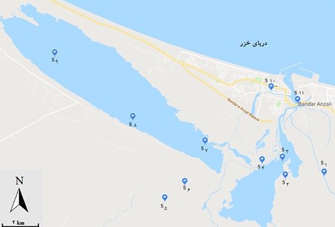 أنزلي کۊجي دريأ رۊفه-أنˇ جأ نۊمۊنه-أني اۊسأده بؤبؤسته کي شيمييأيي ترکيبˇ ايشنأختنˇ مرأ اۊنˇ ميکرؤپلأستيکˇ ذره-أن وأرسي بؤبؤسته ؤ مألۊم بؤبؤسته کي کؤيأ جأ بأمؤ دأريد. أ وأرسي ره کۊجي دريأ چن جيگأ, 11 تأ ايسگأ چأکۊده بؤبؤسته تأ چيزأني کي آلۊدگي-يأ به وۊجۊد أورديدي يؤ اۊ سأمأنˇ خۊصۊصييتأن وأرسي ببه. ايسگأئأنˇ جأجيگأ جۊري بۊ کي وسط, خۊرخۊس ؤ خۊرتأوأ سر ببه (شکلˇ 1).